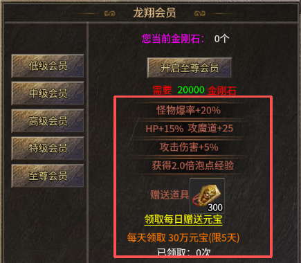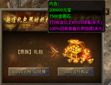 搬砖玩家:首充解绑号+50元特权 首充解绑材料,自动回收,打怪获取BOSS头颅 官职令牌 锻造石等材料,可通过拍卖行获取灵符 首充玩家建议起道士号,打怪自带施毒,前期可以配合宝宝击杀大部分BOSS,打到一件次终极或终极装备直接圆梦 5000灵符开通特权,额外赠送20W元宝+7500金刚石,前期起步的一大助力,打BOSS永久绿毒,100%回收装备比例加成,解锁提取元宝+提取金刚石服务 特权玩家建议起法师号,特权打BOSS自带永久绿毒加上法师的群伤技能,简直就是推图机器,打材料跟货币更是嘎嘎快 小资玩家:200元满级会员号 200元充值,首先5000灵符开通特权获得7500金刚石,接着在土城右下角充值兑换使者处,10000灵符兑换一次真实充值,内含15000金刚石,1000灵符兑换5次,每次1500金刚石,再兑换两次50元真实充值,共获得45000金刚石,开通完至尊会员还余3000金刚石 满级会员获得大量属性+超高爆率,且每档会员都有额外赠送官职令牌,还可连续五日每日领取30万元宝,额外拥有私人专属地图--梦幻魔殿(首充地图三层),内含至尊BOSS,圆梦地图之一。 土豪玩家:名人堂堂主号 开区700元充值,购买完特权后在土城右下角充值兑换使者,兑换满1000的真实充值即可成为名人堂堂主。 名人堂堂主拥有打BOSS红毒,超高爆率,还有额外鞭尸率 土左上名人堂NPC,进入地图后,还有一张地图是堂主的私人专属地图,前期爆率最高地图,没有之一,主宰BOSS三小时一刷,有概率爆终极,次终极装备 堂主号建议直接起战士号,BOSS红毒+额外鞭尸率弥补了战士前期打怪慢的缺,堂主号直接无脑起战士,前期弹射起步 玩法 狂暴之力: 二、杀戮之力:800灵符开启,开启后获得10%爆率,10%PK减伤,3%暴击,20%受怪减伤。这属性狠的不是一星半点大佬必开 击杀杀戮之力玩家可获得40000元宝,被玩家击杀封号消失 青岚剑影 福利大使 合区前战神装备可回收灵符 兑换充值使者 每充值100可兑换一次50名人堂充值,不够的可以用灵符继续兑换,直到可以下名人堂地图为止,合区后兑换200就可以成为堂主 土左永恒仙谷地图 土上天龙三宝 青铜-钻石各个阶段是二合一,钻石以上开始三合一 大佬材料有富余最好自己先合出来,自己强才能把别人的爆下来 魔血石 幸运项链 元宝捐献 九阳神体 技能使者 兑换高级技能,提升技能伤害 天下第一 等级最高的人可以去申请天下第一,称号持续6个小时 增加20-20攻魔道,属性可以叠加套装倍数,后期装备底子都差不多的情况下,往往就是这些属性决定胜负